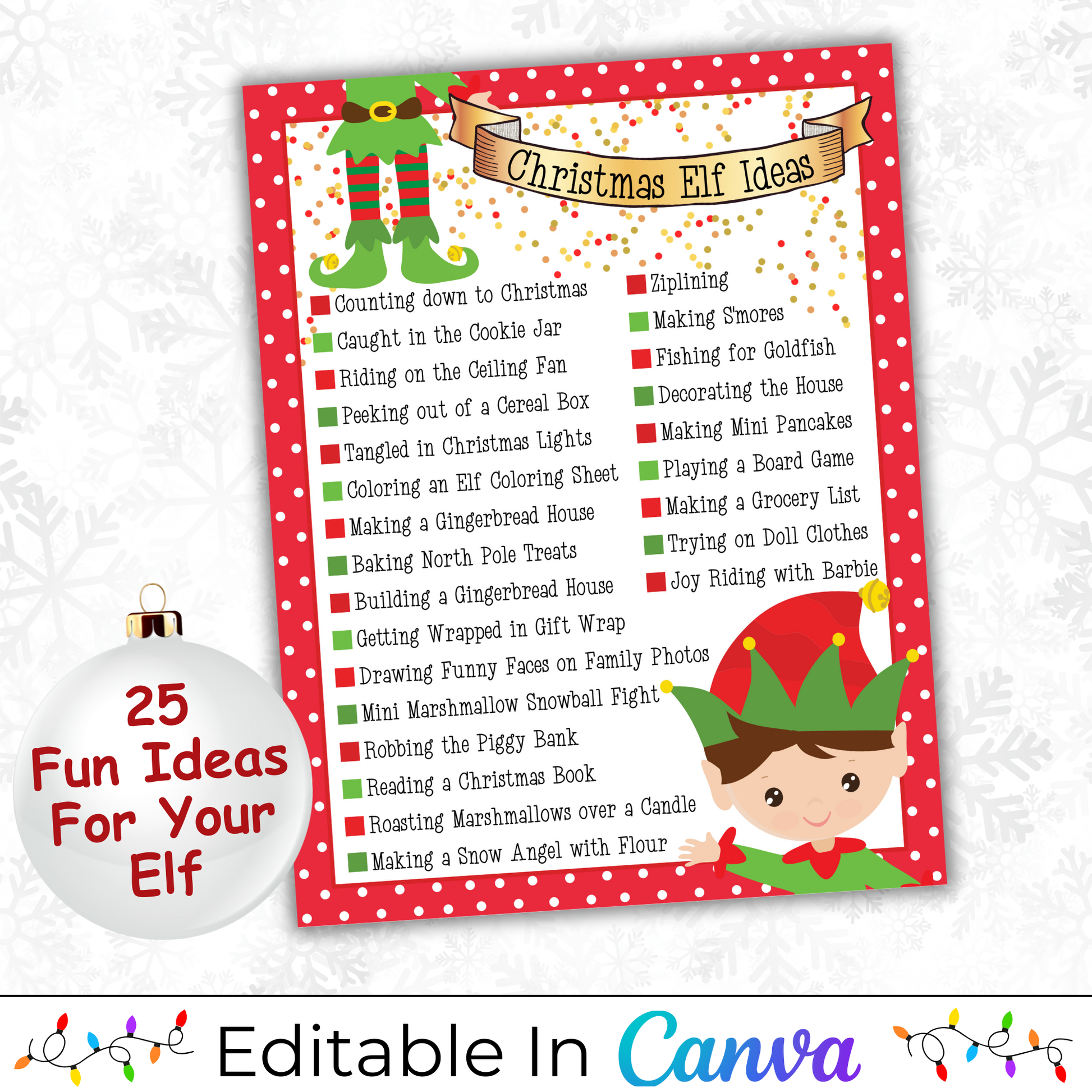 Make your elf’s visit extra magical with these Christmas Elf Letters (and bonus printable)! It includes an editable Elf Arrival Letter, Goodbye Letter, and a list of 25 fun ideas to keep your elf’s adventures fresh all season long. Personalize the letters in Canva with your child’s and elf’s names for a sweet, custom touch...perfect for busy parents who want to keep the magic alive without the stress.