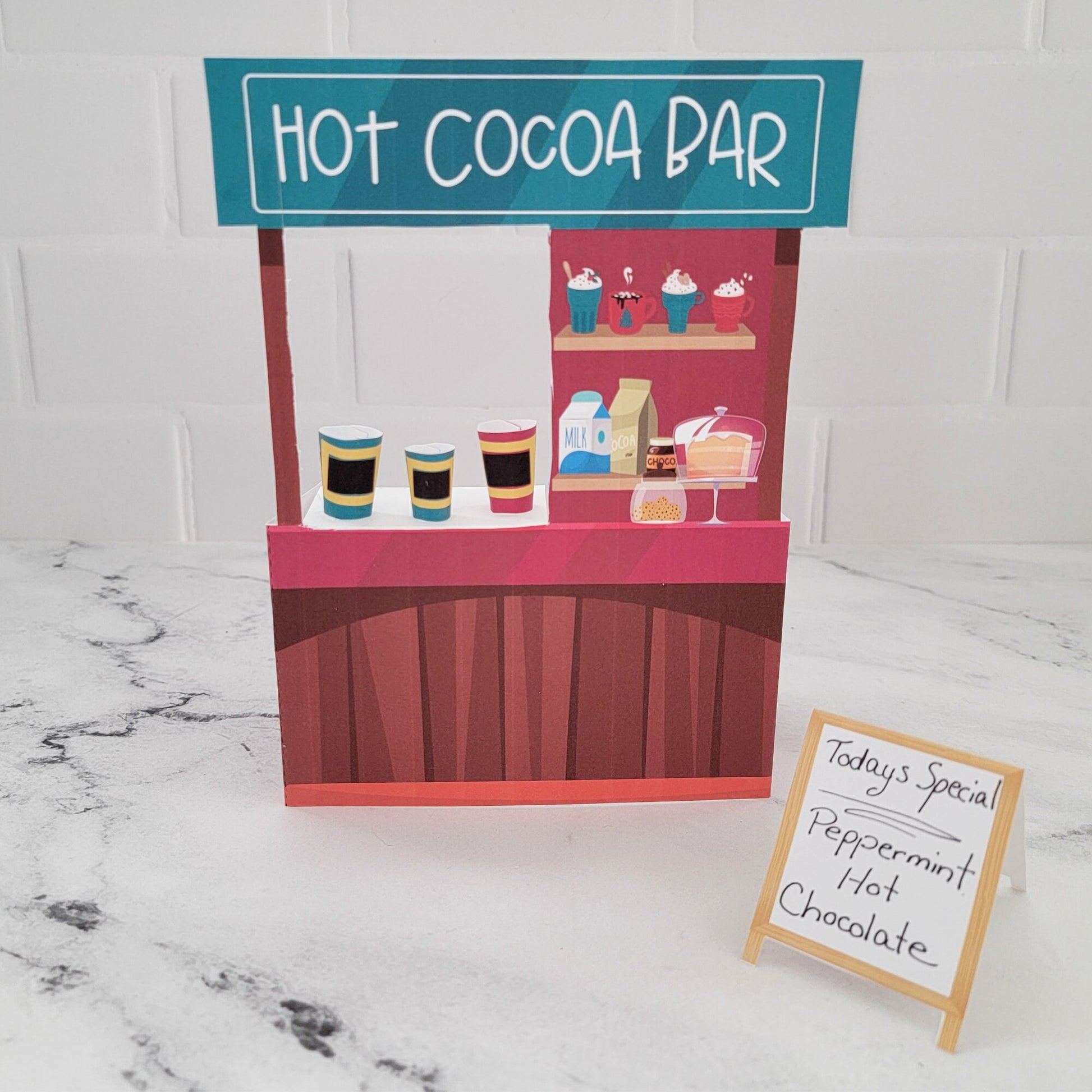 Create a cozy North Pole scene with this Elf Hot Cocoa Bar Printable. Easy to print and assemble, it lets you set up an adorable mini cocoa station for your elf to “serve” drinks from. Includes two sizes, a daily specials sign, and printable cocoa cups—perfect for surprising the kids with a fun holiday morning setup.